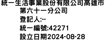 統一生活事業股份有限公司高雄市第六十一分公司
