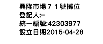 興隆市場71號攤位