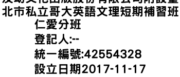 及幼文化出版股份有限公司附設臺北市私立哥大英語文理短期補習班仁愛分班