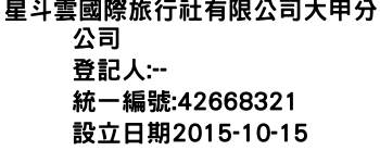 星斗雲國際旅行社有限公司大甲分公司