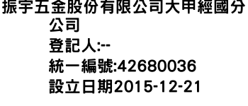 振宇五金股份有限公司大甲經國分公司