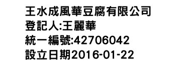 王水成風華豆腐有限公司