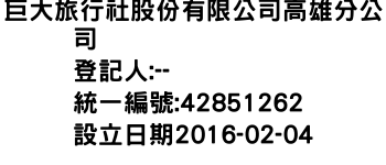 巨大旅行社股份有限公司高雄分公司