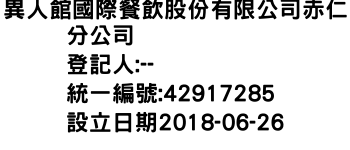 異人館國際餐飲股份有限公司赤仁分公司