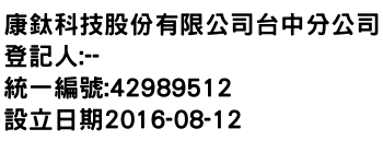 康鈦科技股份有限公司台中分公司
