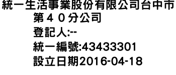 統一生活事業股份有限公司台中市第40分公司