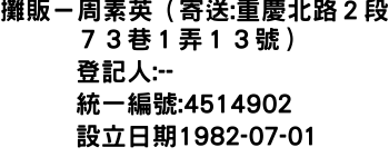 攤販-周素英(寄送:重慶北路2段73巷1弄13號)