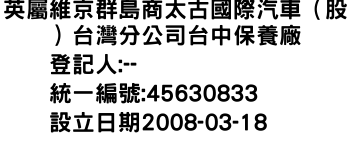英屬維京群島商太古國際汽車(股)台灣分公司台中保養廠