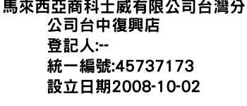 馬來西亞商科士威有限公司台灣分公司台中復興店