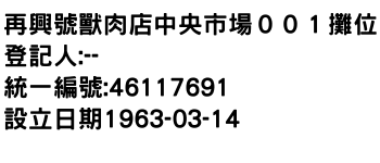 再興號獸肉店中央市場001攤位