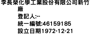 嘉義縣太保市南新村中山路一段三一三號李長榮化學工業股份有限公司新竹廠-統編:46159185
