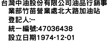 台灣中油股份有限公司油品行銷事業部竹苗營業處北大路加油站