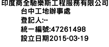 印度商全馳樂斯工程服務有限公司台中工地辦事處