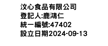 臺南市中西區淺草里金華路3段206號2樓汶心食品有限公司-統編:00047402