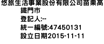 悠旅生活事業股份有限公司苗栗高鐵門市
