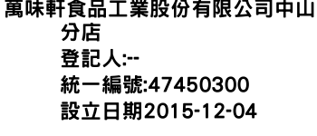 萬味軒食品工業股份有限公司中山分店