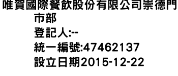 唯賀國際餐飲股份有限公司崇德門市部