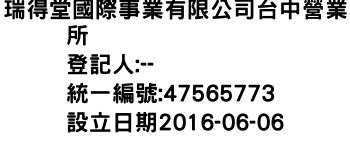 瑞得堂國際事業有限公司台中營業所