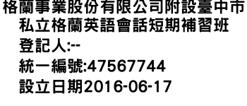 格蘭事業股份有限公司附設臺中市私立格蘭英語會話短期補習班