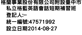 格蘭事業股份有限公司附設臺中市私立格藍英語會話短期補習班