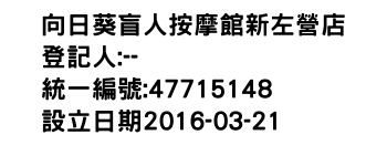 高雄市左營區新下里博愛二路485號地下一層向日葵盲人按摩館生態店-統編:00861377