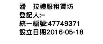 臺中市龍井區東海里藝術街58號2樓茉里禮服租賃坊-統編:94617133