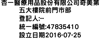 杏一醫療用品股份有限公司奇美第五大樓院前門市部