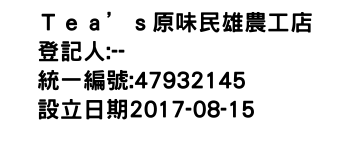Tea's原味民雄農工店