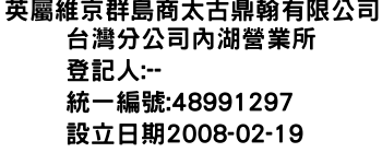 英屬維京群島商太古鼎翰有限公司台灣分公司內湖營業所