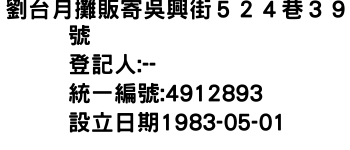 劉台月攤販寄吳興街524巷39號