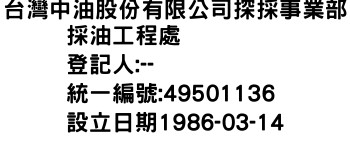 新北市板橋區中山路2段320號台灣中油股份有限公司探採事業部採油工程處-統編:49501136