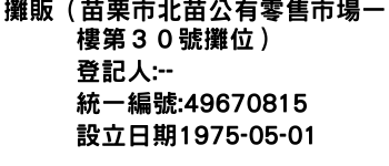 攤販(苗栗市北苗公有零售市場一樓第30號攤位)