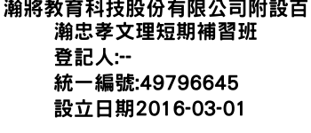 瀚將教育科技股份有限公司附設百瀚忠孝文理短期補習班
