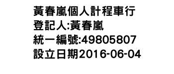 黃春嵐個人計程車行