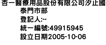 新北市新店區中央三街5號汎亞國際醫療器材股份有限公司-統編:00079699