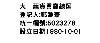 行業分類:其他中古商品(汽機車及其零配件除外)零售