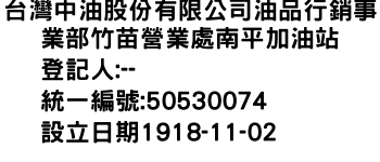 台灣中油股份有限公司油品行銷事業部竹苗營業處南平加油站