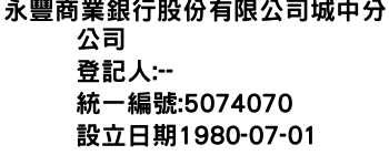 永豐商業銀行股份有限公司城中分公司