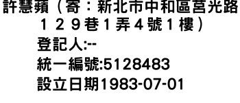 許慧蘋(寄:新北市中和區莒光路129巷1弄4號1樓)