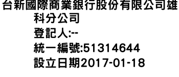 台新國際商業銀行股份有限公司雄科分公司