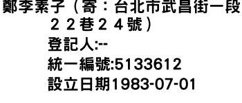 鄭李素子(寄:台北市武昌街一段22巷24號)