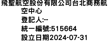 新北市三重區中正北路15號4樓飛聖航空股份有限公司台北商務航空中心-統編:00515664