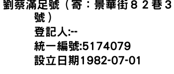 劉蔡滿足號(寄:景華街82巷3號)