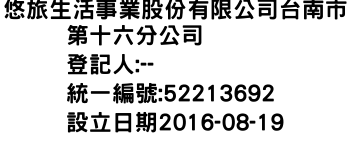 悠旅生活事業股份有限公司台南市第十六分公司