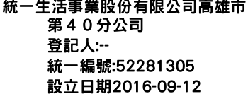 統一生活事業股份有限公司高雄市第40分公司