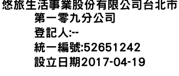 悠旅生活事業股份有限公司台北市第一零九分公司