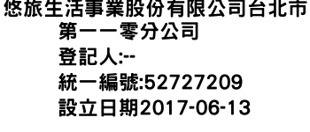 悠旅生活事業股份有限公司台北市第一一零分公司