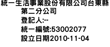 統一生活事業股份有限公司台東縣第二分公司