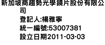 新加坡商趨勢光學鏡片股份有限公司