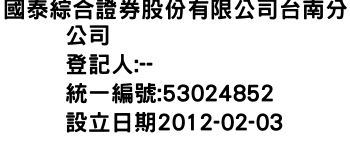 國泰綜合證券股份有限公司府城分公司-統編:00045002